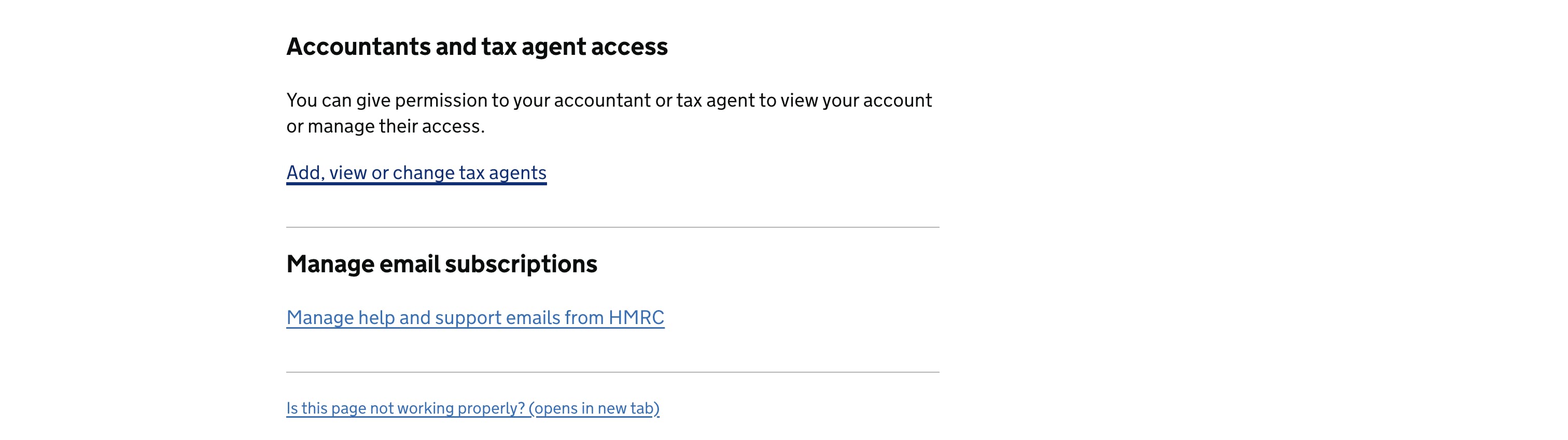 Scroll down to ‘Accountants and tax agent access’, and click ‘Add, view or change tax agents’