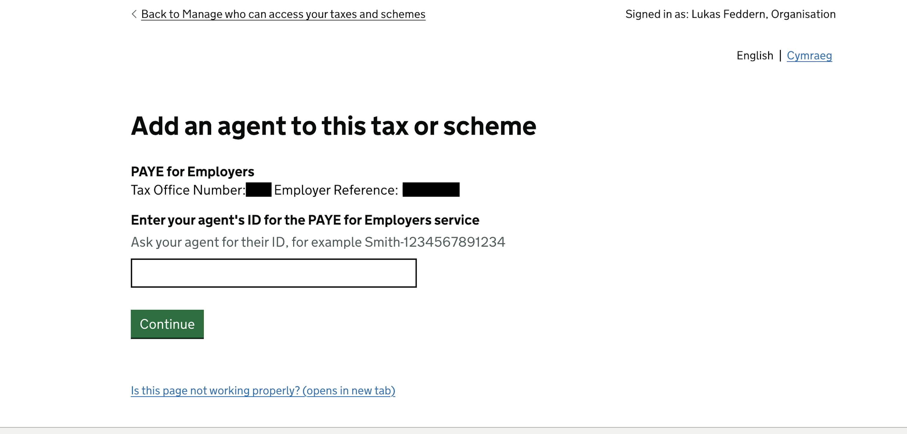 Once your PAYE for Employers has been activated, you can add an agent to manage your taxes.